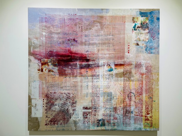 Medium is Memory exhibition showcases a painting from Binion’s DNA series. Binion creates grid-like pattern over an “under conscious” of his personal documents and photographs, in this case, the address book he kept from the 1970s to 1990s while living in New York.