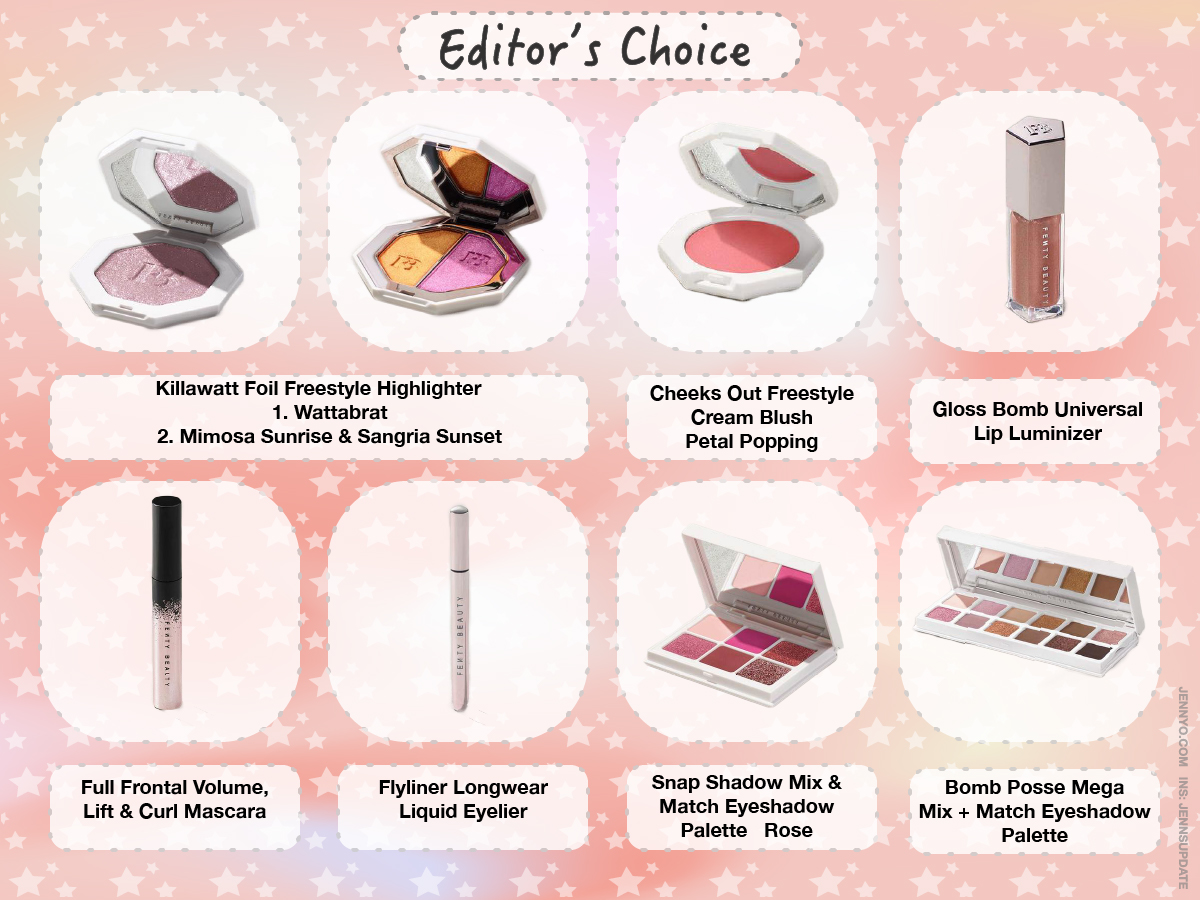 Read more on our favorite products from Fenty. The items are organized by categories: Lip and Eyes, Contour and Face.